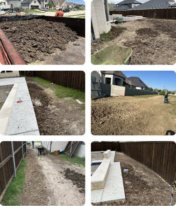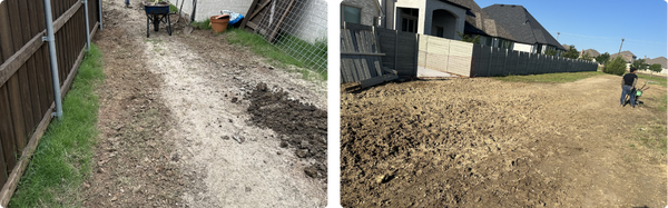An improper grade can cause frustration and require costly remedy. We don’t use skid steers or other heavy equipment. We use manual labor. Don’t let someone sell you grading when drainage is the solution, or vice versa. If trash removal is required, we will fill up the dump trailer and take it to the landfill.